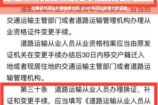答案2021年可以加学分的证书比如各种初级职称,比如初级审计师,初级会计职称,初级经济师职称,全国计算机等级考试二级,三级,四级,大学英语46级都是可以加学分的证书,这些证书要么是不用没有学历要求,要么是只需要高中学历就行,谢谢