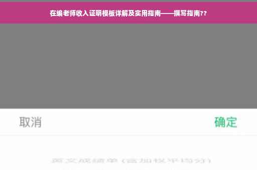 摘要:本文介绍了在编老师收入证明模板的详解及实用指南。文章提供了关于如何撰写收入证明模板的指导,包括模板的格式、内容、注意事项等。通过本文,读者可以了解到如何正确填写收入证明模板,以便在需要证明个人收入时提供准确、有效的证明文件。