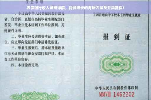 摘要:农信银行的收入证明显示其稳健增长的背后力量。该证明反映了银行的良好财务状况和盈利能力。开具农信银行的收入证明需要提供相关个人信息和身份证明,并按照银行规定的流程进行申请。通过收入证明,可以了解个人在银行的收入状况,同时也有助于个人信用评估和贷款申请。农信银行凭借其稳健的经营模式和优质的服务,赢得了广大客户的信赖和支持。