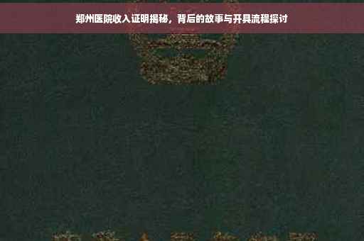 摘要:郑州医院的收入证明是患者或员工获取收入状况的重要证明文件,但其背后隐藏着许多故事。本文将为您揭秘收入证明背后的故事,包括如何开具收入证明以及需要注意的事项。从患者角度和员工角度分别介绍,让您了解收入证明的重要性以及如何正确开具。
