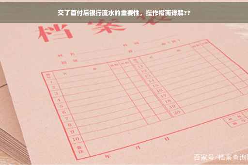 在购房过程中,交了首付之后,银行流水成为了关注的焦点,对于许多人来说,这可能是一个陌生且复杂的环节,本文将为您详细介绍交了首付后银行流水的重要性,以及如何正确处理这一环节,以确保您的购房过程顺利进行。