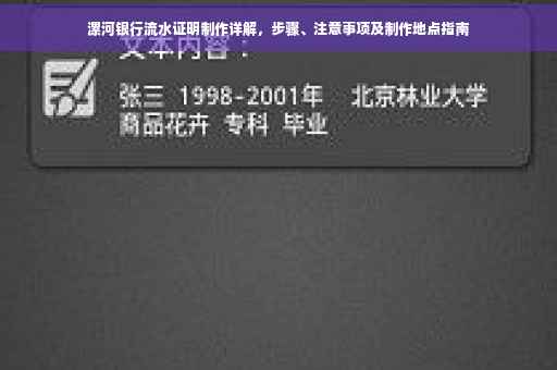 在当今社会,银行流水证明已成为多个领域不可或缺的材料,无论是贷款申请、信用卡办理,还是出国留学、旅游,它都发挥着重要的作用,对于漯河地区的居民来说,了解如何制作银行流水证明显得尤为重要,下面,我们将详细介绍漯河地区制作银行流水证明的具体步骤及注意事项。