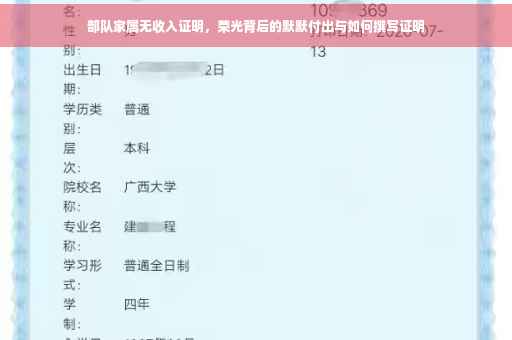 自古以来,军队都是国家的骄傲和荣耀,是保卫家园、维护和平的重要力量,在这背后,有一群默默付出的家属,她们为了支持军人的工作,放弃了工作、家庭和个人的梦想,有些部队家属因各种原因无法提供收入证明,她们的生活状况如何?又该如何看待她们的无收入证明背后的付出呢?
