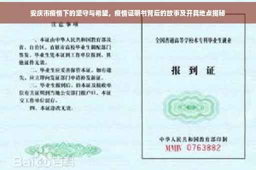 摘要:,,在安庆市,疫情之下人们展现坚守与希望的力量。疫情证明书背后隐藏着许多故事,这些证明书是疫情期间的通行证明,关乎每个人的生活与安全。想要获取安庆市的病情证明书,可前往指定的医疗机构开具。这篇文章将带你了解这些故事和证明书的获取途径。