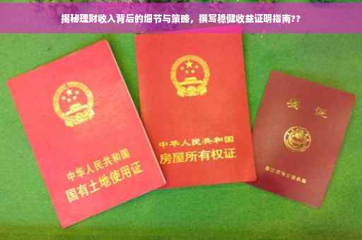 随着金融市场的不断发展和个人财富管理的日益重要,理财收入作为家庭收入的重要组成部分,其证明和规划的重要性逐渐凸显,理财收入证明是指投资者购买理财产品后,由银行或其他金融机构出具的证明投资者在一定时期内从理财产品中获得的收益情况的文件,理财收入证明在税务申报、贷款申请、财产证明以及其他法律事务等领域具有广泛应用。