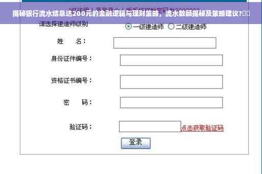 随着金融市场的不断发展和个人财务管理的日益重要,银行流水作为我们日常经济活动的主要体现,其背后隐藏的金融逻辑和策略对于每个人来说都具有极大的意义,本文将深入探讨银行流水结息达200元的背后含义,带您领略这一数字背后的金融世界,并揭示有效的理财策略。