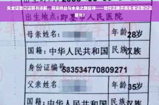 失业证登记证明书是一份具有法律效力的官方文件,它详细记录着一个人的失业状况、失业原因及求职意愿等信息,对于失业人员而言,获得这份证明是获取政府援助、参加职业培训、享受失业保险待遇的重要途径,这份证明书的背后,隐藏着更为复杂的社会现象。