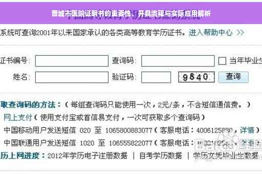 晋城市医院作为本地区的知名医疗机构,其证明书的重要性体现在以下几个方面: