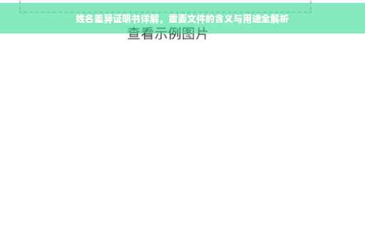 在日常生活中,我们可能会遇到各种不同类型的证明文件。“姓名差异证明书”是一种较为特殊的证明文件,它在特定情况下发挥着重要的作用,本文将详细介绍姓名差异证明书的含义、用途、办理流程以及注意事项,帮助读者更好地了解和使用这一文件。
