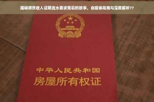 随着房价的不断上涨,贷款购房成为越来越多人的选择,在申请房贷的过程中,银行会要求提供一系列材料,其中最为重要的便是收入证明和银行流水,本文将为你详细介绍房贷收入证明要求流水的相关知识,助你顺利申请房贷,实现购房梦想。