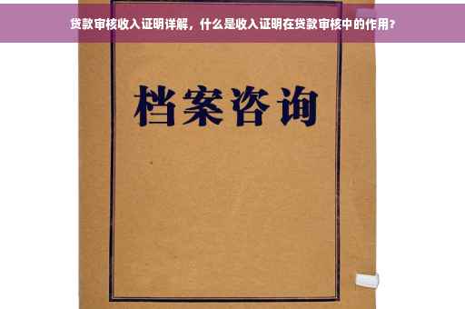 随着经济的发展和金融市场的繁荣,贷款已成为人们实现各种需求的重要融资方式,在申请贷款过程中,收入证明是审核环节的关键所在,本文旨在详细解析贷款审核中的收入证明,帮助读者更好地了解相关流程及注意事项。
