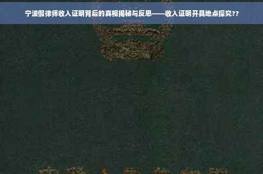 一则关于宁波假律师收入证明的新闻在社交媒体上引发了广泛的讨论和关注,这一事件不仅让人们开始关注律师行业的收入状况,更引发了公众对于律师职业道德和行业监管的深刻反思,本文将围绕这一事件,深入分析其背后的深层次原因,并探讨如何加强行业监管与职业道德建设。