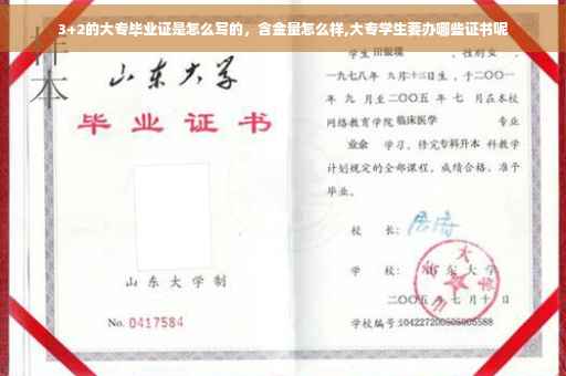3+2大专是中专学校开设的一种班,就是初中毕业生在中专报名读五年书就可以直接拿大专毕业证了,其实是成人高考大专毕业证,只有通过对口高职进入的大专才是全日制,所以3+2的大专毕业证是成人高考大专毕业证,含金量不如全日制。