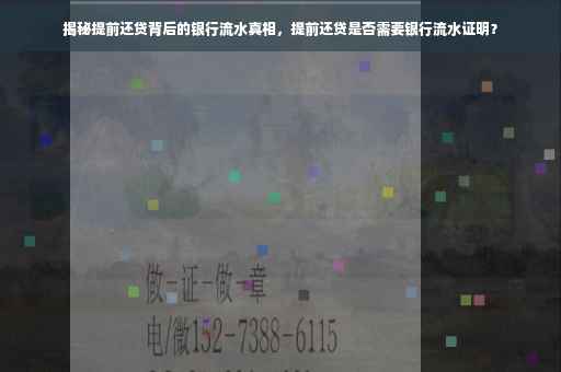 近年来,随着金融市场的不断发展和个人理财观念的普及,越来越多的人开始关注提前还贷这一金融行为,不少人在房贷、车贷等贷款方面,选择提前偿还部分或全部贷款,以减轻负债压力,在提前还贷的过程中,银行流水成为了不可忽视的一环,本文将深入探讨提前还贷与银行流水之间的关系,帮助大家更好地了解这一金融现象。