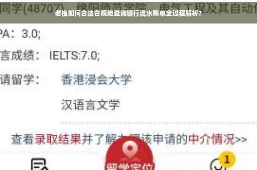 本文介绍了老板如何合法合规地查银行流水账单的全过程。通过合法途径获取相关权限后,老板可以前往银行柜台或网上银行查询企业的银行流水账单,了解企业的资金流向和收支情况。在查询过程中,老板需要遵守相关法律法规和银行规定,确保企业隐私和信息安全。本文旨在为老板提供合法、便捷、高效的查询银行流水账单的方法和流程。??