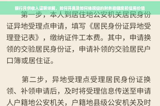 在当今社会,随着金融市场的繁荣与个人信用体系的完善,银行月供收入证明已成为我们日常生活与工作中不可或缺的一部分,无论是贷款申请、信用卡办理,还是租房、求职入职,一份真实有效的银行月供收入证明都能为我们带来极大的便利,本文将详细解读银行月供收入证明的作用、内容构成、办理流程以及需要注意的事项,帮助大家更好地了解并运用这一重要文件。