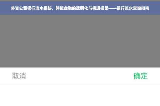 随着全球化进程的加速,外资公司在中国的业务日益增多,其金融活动也愈发引人关注,外资公司的银行流水作为金融交易的重要记录,对于了解企业运营状况、跨境金融的透明度等方面具有重要意义,本文将对外资公司银行流水进行深入探讨,揭示其背后的真相以及所带来的机遇与挑战。