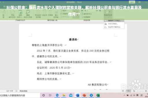 在当今社会,随着经济的不断发展和个人理财观念的普及,越来越多的人开始关注社保公积金和银行流水的重要性,这两者不仅关系到个人的生活质量和社会福利保障,还与个人的经济状况息息相关,本文将深入探讨社保公积金和银行流水的概念、作用及其在个人理财中的重要性,帮助读者更好地了解如何合理利用这些资源,实现个人财务的健康和可持续发展。