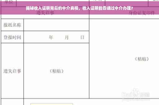 在当今社会,办理收入证明已成为求职、贷款等场合的必备材料,一些人由于种种原因无法自行提供有效的收入证明,于是选择通过中介机构来办理,这种现象逐渐引发公众关注和热议,本文将深入探讨中介办理收入证明的背后真相,揭示其中的利弊得失,并提醒广大读者谨慎对待这一现象。