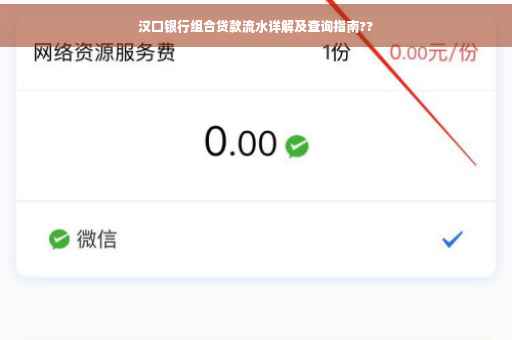 摘要:本文将详细介绍汉口银行组合贷款的流水情况,包括贷款流程、查询方式等。通过本文,读者可以了解汉口银行组合贷款的具体操作,包括如何查询贷款流水,以便更好地管理自己的财务。文章旨在帮助借款人更好地了解贷款流程,确保贷款使用的透明度和便捷性。