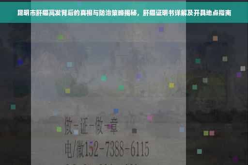 摘要:昆明市肝癌高发,一份肝癌证明书揭示了背后的真相。该证明书涉及肝癌的诊断、治疗和预防策略。公众对肝癌的认知和预防意识至关重要。昆明市肝癌证明书的开具地点可在当地医疗机构或医院获取。加强肝癌早期筛查、提高防治意识,是降低肝癌发病率和死亡率的关键。