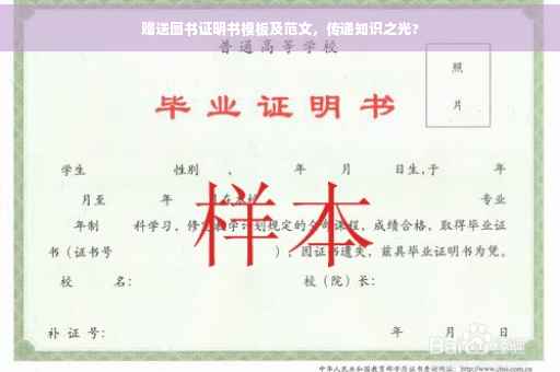 摘要:,,本证明书旨在确认赠送图书的事实。经过精心设计和制作,本模板提供了一份规范的赠送图书证明书范文。通过此证明书,赠书者明确表达了对受赠者的诚挚祝福和期望,同时受赠者也能感受到图书带来的知识和文化价值。此证明书适用于各种场合,如学校、图书馆、企事业单位等,旨在促进阅读推广和文化交流。