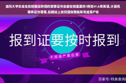 大学毕业生在校期间获得的荣誉证书会,例如4\6级英语,计算机等级证书等等.这些东东是国家认证的,当然会有记录的,当然不是把证书放在里面,放不下,但是里面有你的记录:如XX年,XX以XX分通过了国家英语四级等.但是另外的一种情况,如:你在学校的演讲比赛得奖,在作文大赛里面得奖,或者就是说班上或者社团里面获得奖,如果你上报了的话,会在你的每学期的记录上获奖情况那一栏有的,如果没有上报的话就没有了.学校现在应该都有素质拓展的认证吧,上面有详细的记录.北京反正基本的学校都有!放心吧,四六级,计算机啊是有的!!!:)