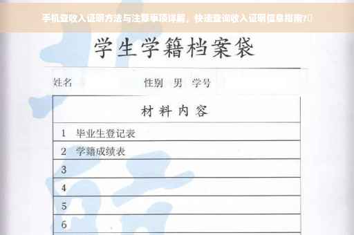 摘要:本文将介绍手机查收入证明的方法和注意事项。通过手机上的相关应用或银行APP,用户可以便捷地查询收入证明信息。在查询过程中,需注意保护个人隐私,确保信息安全。还需注意核实信息的真实性,确保查询来源的可靠性。本文将全面指导读者如何利用手机查询收入证明,并提醒相关注意事项。