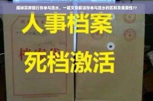 摘要:本文将全面解读买房时的银行存单与流水,揭示二者的区别。通过简洁明了的语言,帮助读者了解在购房过程中银行存单和流水的重要性,以及如何正确理解和使用它们。阅读本文,将助你更好地准备购房资金,避免不必要的困扰。