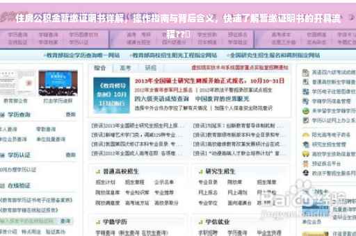 摘要:本文将详细介绍住房公积金暂缴证明书的相关内容,包括其背后含义和操作指南。读者将了解暂缴证明书的定义、用途以及开具流程。本文旨在帮助读者更好地理解和运用住房公积金暂缴证明书,解决相关疑问,确保住房公积金的正常缴纳与使用。