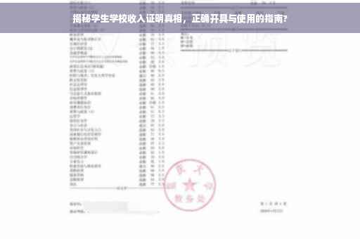 摘要:本文将揭示学生学校收入证明背后的真相,探讨如何正确开具和使用收入证明。文章将介绍学生在需要开具收入证明时,应如何与学校沟通并准备相关材料。本文还将提醒学生注意收入证明中的细节,确保信息的真实性和准确性。阅读本文,将帮助学生了解如何高效、准确地获取收入证明,为未来的就业和生活做好准备。