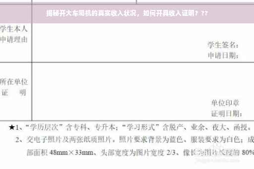 摘要:开大车的收入证明是揭示职业背后真实收入状况的重要文件。要开具收入证明,通常需要提供个人身份证明、驾驶证、从业经历等相关材料。开大车的司机收入受多种因素影响,如所在地区、运输货物种类、工作经验等。本文将介绍如何准备材料并正确开具收入证明,帮助公众更全面地了解开大车司机的真实收入情况。