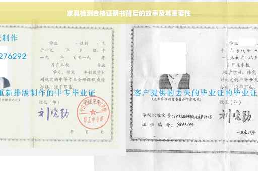 摘要:家具检测合格证明书对于消费者和家具制造商都至关重要。这份证书不仅证明了家具的质量和安全,还反映了制造商对产品质量的承诺和责任心。背后的故事展示了制造商为确保家具质量所付出的努力和消费者对安全、健康及生活品质的重视。相关图片展示了检测流程的严谨性。这份合格证书,是消费者放心购买,制造商信誉的保障。