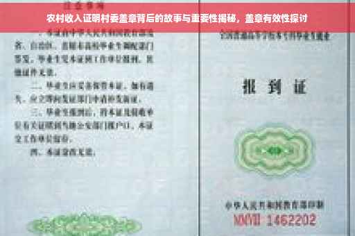摘要:农村收入证明村委盖章具有重要性,是农民申请贷款、享受政策优惠等事务的必要证明。其背后涉及到农村社会治理、金融发展及农民利益保障等方面的故事。村委盖章的收入证明是否有效,需结合具体情况而定,但一般情况下是有效的。
