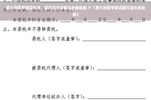 随着留学的热潮不断高涨,意大利以其深厚的文化底蕴和优质的教育资源吸引着越来越多的中国学子,在申请意大利留学签证的过程中,银行流水作为财务证明的一部分,其重要性日益凸显,本文将详细介绍银行流水在意大利留学签证申请中的作用,以及如何准备符合要求的银行流水,助你顺利获得留学签证。