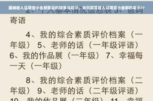 近年来,随着社会经济的发展和就业形势的多样化,越来越多的人开始关注自己的收入状况,在这个过程中,有一部分人发现自己的收入证明金额逐渐变小,这背后隐藏着哪些原因?本文将围绕这一现象展开分析,探讨背后的原因,并提出应对之策。