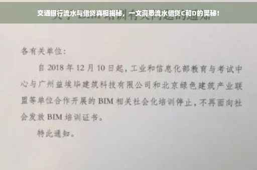 摘要:本文深入解析交通银行流水与借贷真相,详细解读流水借贷中的C和D标识含义,帮助读者全面了解交通银行流水借贷的相关知识和细节。通过本文,读者可以更加清晰地理解银行流水与借贷之间的关系,以及如何正确利用银行流水进行贷款申请。