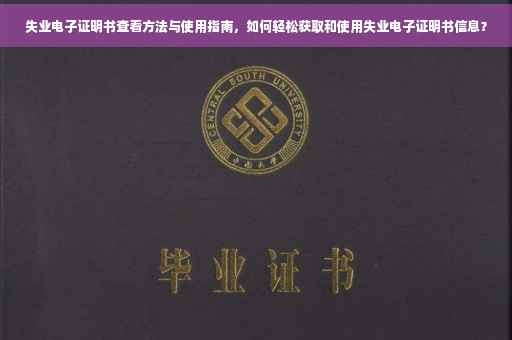 摘要:本篇内容是关于失业电子证明书的查看方法与使用指南。详细介绍了如何查看失业电子证明书的信息,包括查看步骤、所需材料以及注意事项等。失业人员可通过便捷的方式获取自己的电子证明书,方便求职、申请失业救助等。本文旨在帮助失业人员更好地利用失业电子证明书,顺利度过失业期。