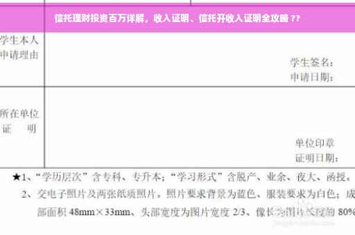 以张先生为例,他投资了某信托公司的百万信托产品,在投资过程中,张先生需准备收入证明以证明资金实力,张先生所在公司为他出具了详细的收入证明,并附上了相关材料,如工资流水和税务证明等,这些材料充分证明了张先生的收入来源和财务状况,使他成功投资百万信托产品。