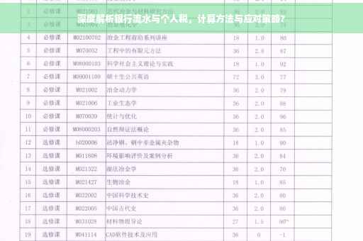 在当今社会,随着经济的发展和个人收入的增加,越来越多的人开始关注个人税的问题,银行流水作为税务部门审核个人收入的重要依据之一,其金额大小直接关系到个人所得税的缴纳情况,本文将围绕银行流水大与个人税的关系展开讨论,帮助读者深入了解其中的奥秘和应对策略。