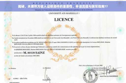 在现代社会,随着就业竞争的加剧和经济压力的增大,夫妻双方收入证明原件成为了越来越多场合的必备材料,无论是购房贷款、申请信用卡、申请签证还是其他重要事务,收入证明原件都是证明个人经济实力和信用状况的重要依据,本文将详细介绍夫妻双方收入证明原件的重要性及申请流程,帮助广大读者更好地了解和运用这一重要文件。