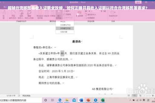 随着全球化的发展,越来越多的人选择移民海外,其中台湾作为一个充满活力和机遇的地方,吸引了众多移民的目光,在申请移民的过程中,收入证明是不可或缺的一环,本文将详细介绍台湾移民署收入证明的相关内容,帮助申请者顺利办理移民手续。