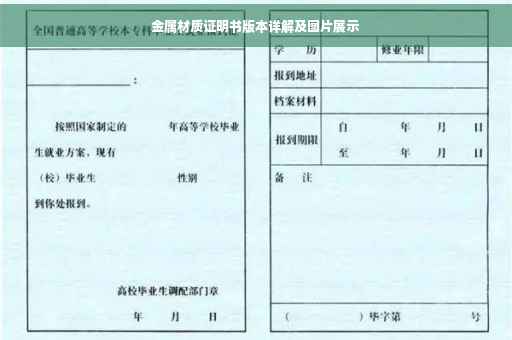 摘要:本文介绍了金属材质证明书版本详解,包括其图片展示。内容主要聚焦于金属材质证明书的版本差异和特点,为读者提供了全面的了解。通过本文,读者可以清晰地了解不同版本的金属材质证明书所涵盖的详细信息,从而更加准确地评估金属材质的质量和性能。