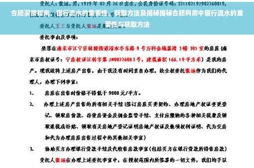 在合肥购房的过程中,了解并正确获取银行流水是顺利实现购房目标的关键一步,希望本文提供的建议和指南能够帮助您在购房旅程中更加顺利,实现您的安居梦想。