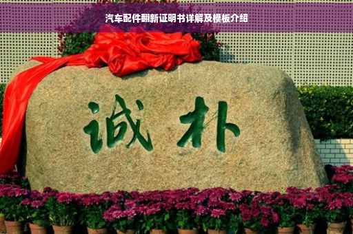 摘要:本篇文章主要介绍了汽车配件翻新证明书的相关内容。文章详细解释了汽车配件翻新证明书的模板,包括证书的基本信息、汽车配件的详细信息、翻新过程、质量认证等内容。通过本文,读者可以了解到如何获取正规的汽车配件翻新证明书,以及如何鉴别证书的真伪,以保障自身权益。文章旨在为车主和消费者提供有关汽车配件翻新证明书的全面信息,确保汽车配件市场的健康发展。