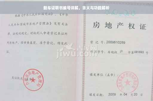 摘要:新车证明书编号详解,新车证明书编号是购买新车后获得的一种证明文件上的编号,用于确认车辆的身份、品牌、型号等信息。这份证明文件是车辆合法上路的必要证明之一,编号的详细解析可以帮助车主了解车辆的相关信息,确保车辆合法性和安全性。