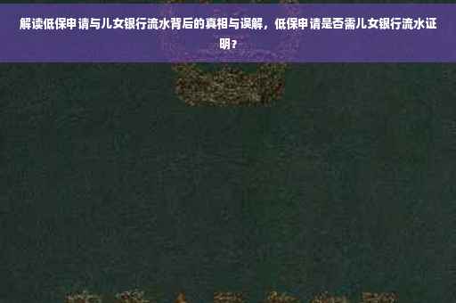 在社会保障体系中,低保作为一种关键的社会救助措施,旨在为贫困家庭提供基本生活保障,在申请低保的过程中,有时会遇到一些引人深思的要求,比如需要提供儿女银行流水,这一要求的背后隐藏着怎样的逻辑和考量呢?本文将对此进行深入探讨。
