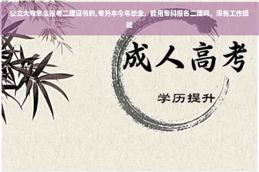 大家好,关于公立大专怎么报考二建证书的问题,于是小编就整理了5个相关介绍公立大专怎么报考二建证书的解答,让我们一起看看吧。