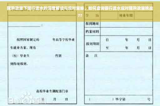 摘要:在限购政策背景下,银行流水成为审核贷款的重要参考依据。本文将深度解读限购政策下银行流水的查询方式及应对策略。通过了解银行流水的具体要求,掌握查询方法,并合理规划个人财务,以应对银行审核。本文还将提供实用的操作建议,帮助读者更好地适应限购政策,确保顺利办理贷款。