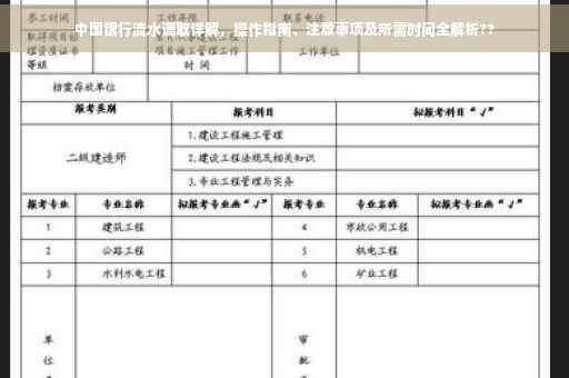 摘要:,,本文介绍了中国银行调取流水详解,包括操作指南与注意事项。内容包括流水单调取所需的时间以及具体步骤。用户可根据此指南了解如何便捷地获取银行流水,并注意在操作过程中避免出现问题。,,建议字数:120字左右。